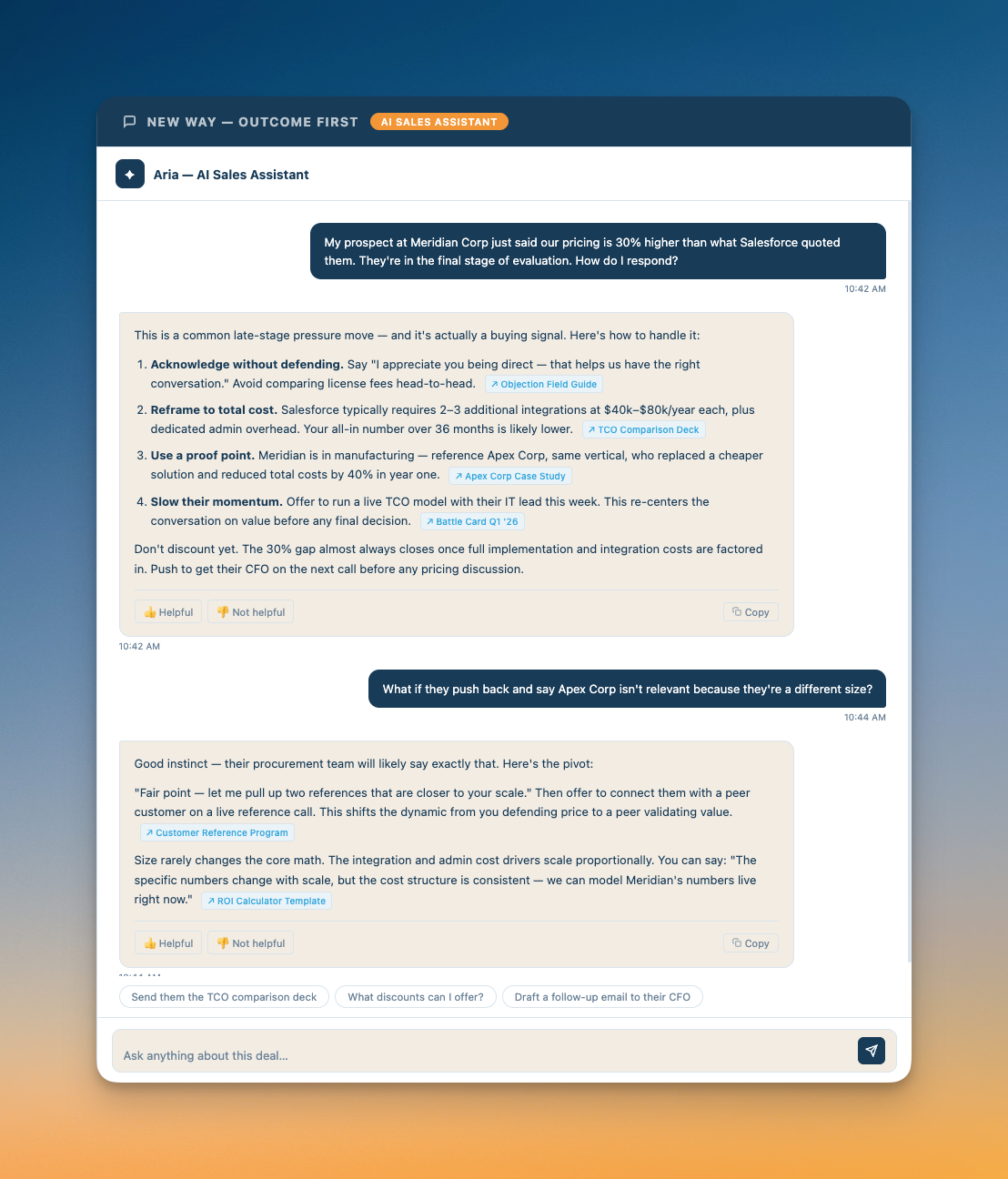 But sales reps did not need content. They needed outcomes to help them get the job done.