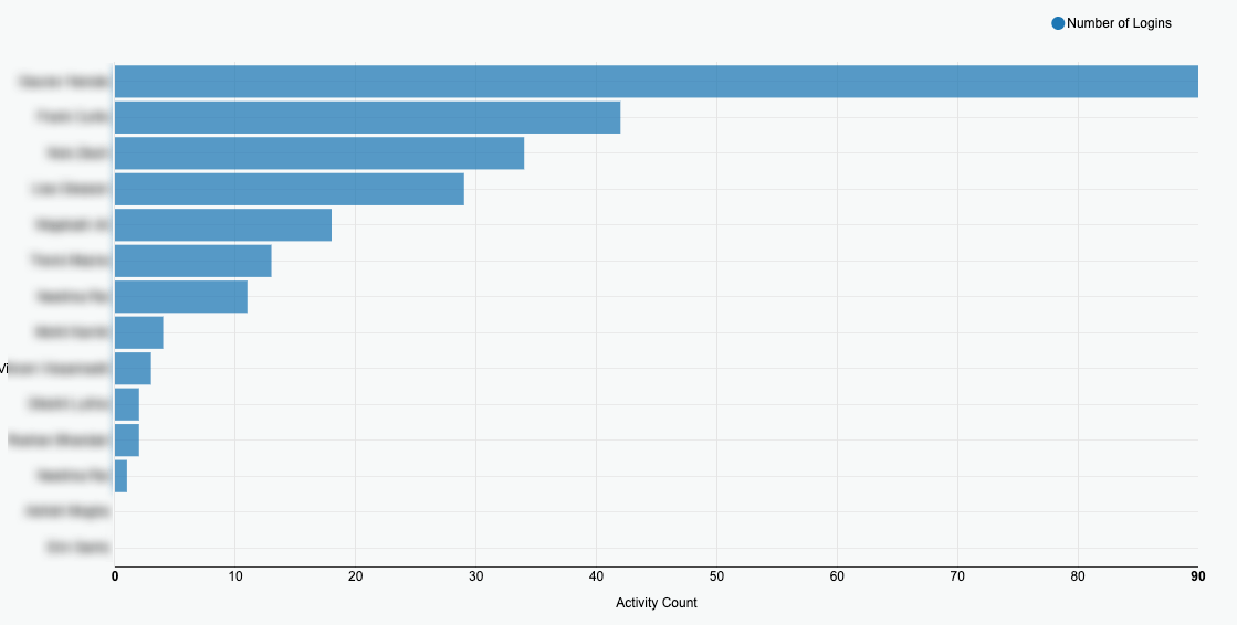 - There is definitely one salesperson making the most use of the platform, accessing hundreds of pieces of content and logging in dozens of times