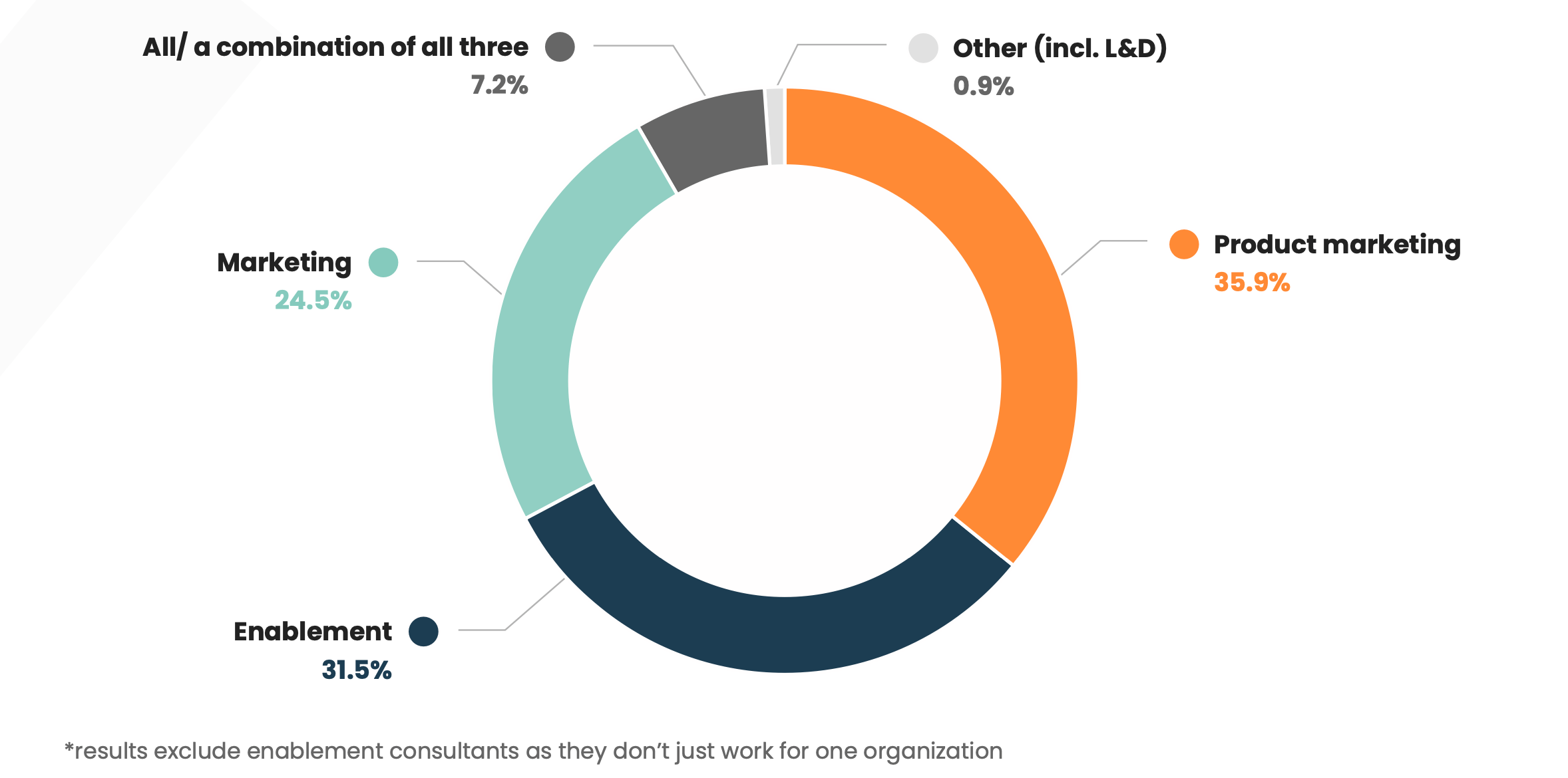 While this is an interesting statistic, if we include Product Marketing content (which would come from a division of the Marketing team), as well as the influence Marketing has to ensure that branding and messaging are consistent– the Marketing teams are actually still the largest contributors of content in a typical organization. Since Marketing owns branding and messaging, even the enablement and “other” content will go through Marketing to ensure quality and alignment.