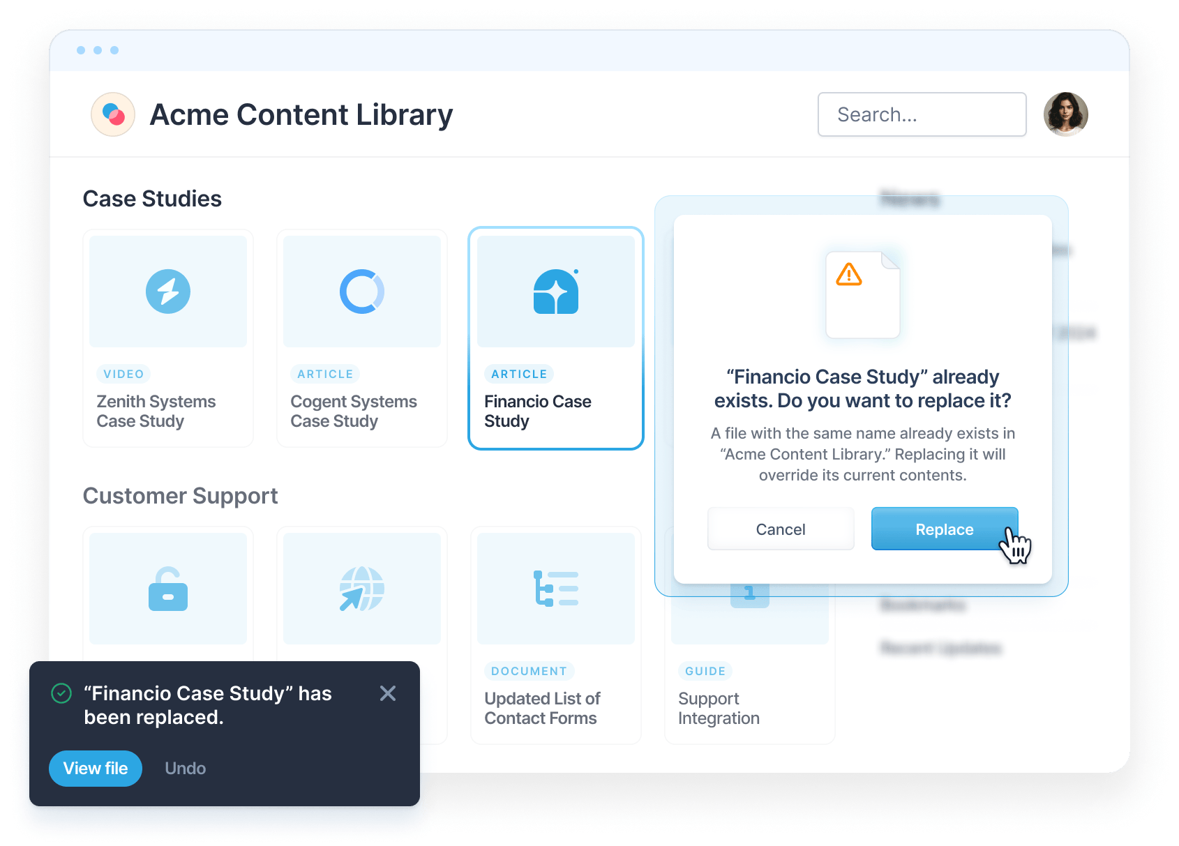 Mitigate your Revenue Team's struggle with scattered content by streamlining your library to guide customers and drive success.